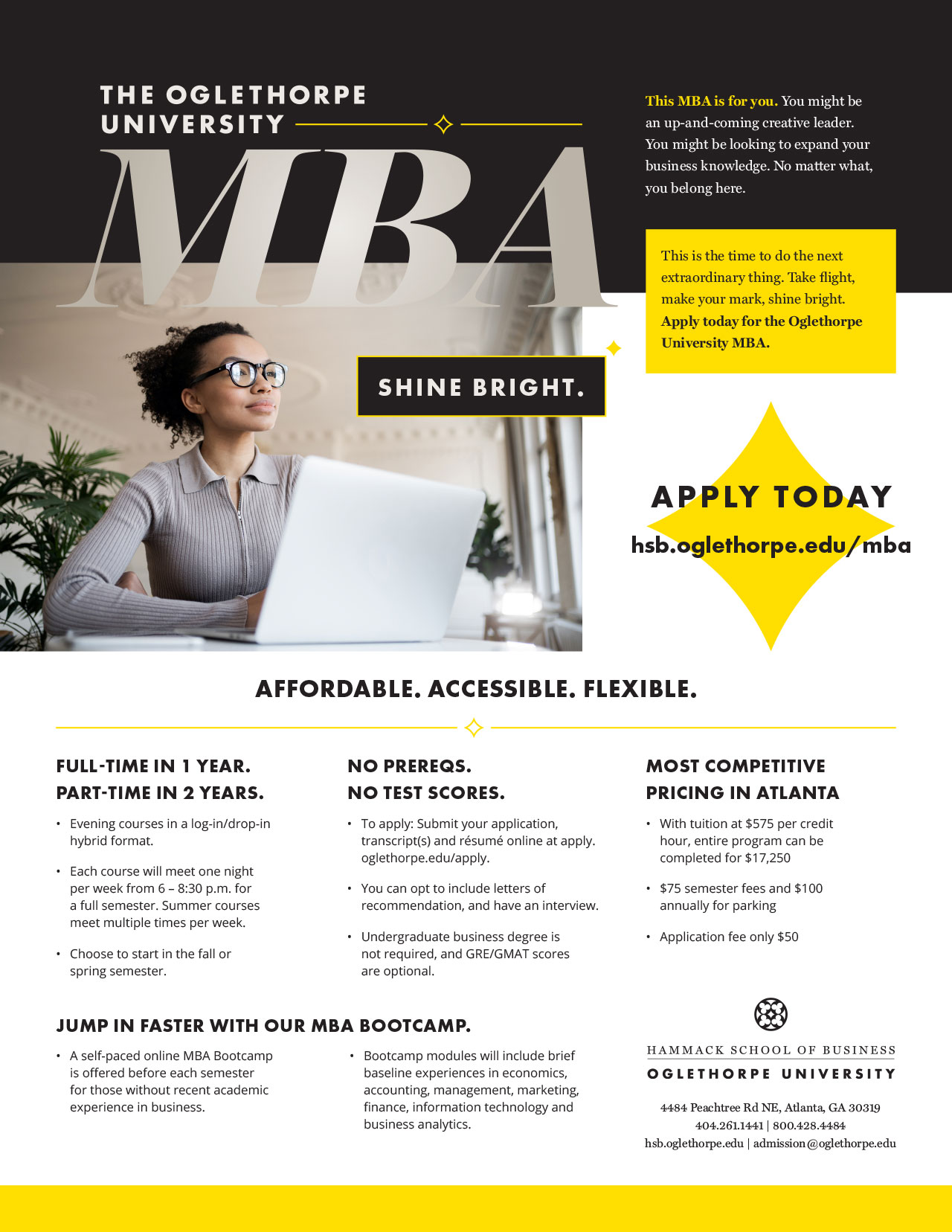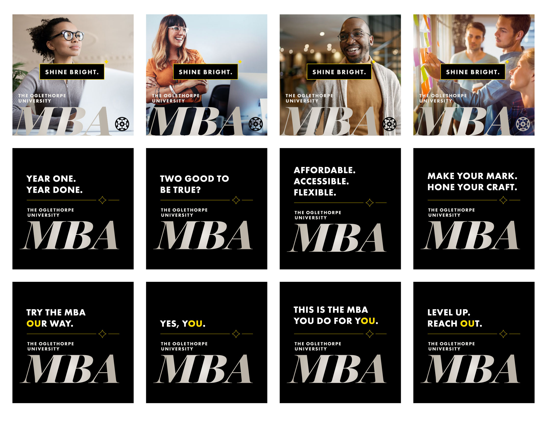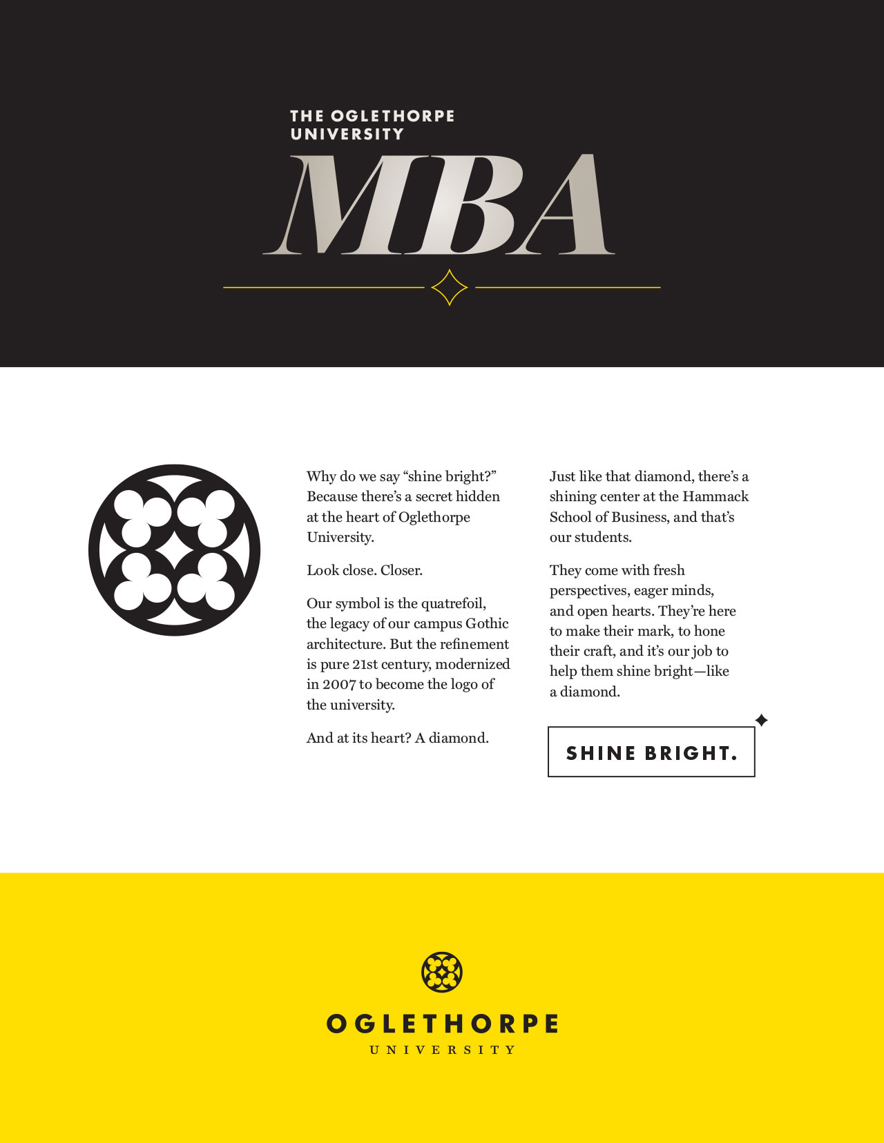 Oglethorpe University asked me to create a visual identity and campaign for their MBA program. They needed a graphic treatment to be used alongside Oglethorpe University Hammack School of Business logo, a one-page information sheet, and social media graphics.